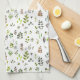 Watercolor, colorful, eucalyptus Leaves pattern kitchen towel. Hand painted artwork by UK artist Monika Howarth.