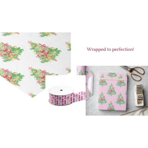 Watercolor Coquette Bows Christmas Tree Wrapping Paper Sheets
