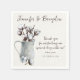 These custom paper wedding napkins have a rustic farmhouse feel to them and use a warm winter white watercolor paper background look to showcase the watercolored gray tin water pitcher that is holding a bouquet of white and brown cotton stems with the names of the bride and groom across the top in dark brown script. To the right of the pitcher, a short message says, "Thank you for celebrating our special day with us!" in dark brown script with a single cotton branch below. The wedding date is in grey-green below the small cotton stem. If you need help customizing the wording, please email me at niteowlstudio@gmail.com or use the Zazzle chat feature and I'll be happy to help.