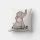 Watercolor Cute Baby Elephant With Blush & Flowers Throw Pillow