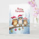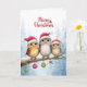 Watercolor Cute Owls Whimsical Christmas Folded Card