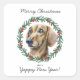Watercolor Dachshund Dog Merry Christmas Wreath Square Sticker