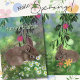 If you are looking for something original, and unique, this card is a watercolor and digital painting mix featuring a real rabbit on both sides. The bunny is hiding under a tree branch in a beautiful field of daisies at sunset. The back features the same bunny with a chicken. My love of animals inspired it. Enjoy unique art.