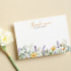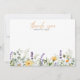 Get a personal touch to your thank you note card with this personalized stationery flat cards feature your name or family name under a "thank you" in contemporary handwritten calligraphy font. The card is decorated with an elegant and boho chic border of wildflowers, daisies and lavender leaves.