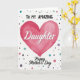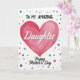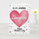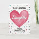 This card features a large fuchsia heart centered on a white background, painted with a soft watercolor look and gentle layered textures that feel affectionate and close ❤️. Above the heart, the words “TO MY AMAZING” sit near the top in dark, simple sans-serif letters, spaced neatly so the message feels steady and supportive. Across the heart, “Daughter” appears in white flowing lettering, standing out clearly against the pink and drawing the eye like a warm embrace. Beneath the heart, “Happy Mother’s Day” is placed in black flowing lettering, giving the layout a graceful finish without crowding the design. Around the main artwork, scattered round dots in mixed sizes drift like confetti, adding a friendly, celebratory energy 🌼. The dots use soft teal, muted purple, gentle gray, pale pink, and a few black accents, creating a sweet balance that suggests a caring bond. The overall spacing leaves plenty of open white space, so the heart and text feel like they’re speaking directly to each other. The fuchsia heart sits in the center while the multicolored dots lightly sprinkle the edges and corners.