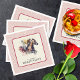 Elegant derby party napkins feature a watercolor race horse and jockey on ivory with a red pattern border. MATCHING items in our collection.