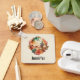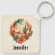Personalized keychain with a beautiful painted illustration. Green cacti and brown mountains with orange desert flowers. Scenic pretty southwest design.