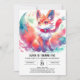 Watercolor Digital Fox Birthday Invitation