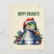 Watercolor dinosaur Christmas Santa Holiday Postca