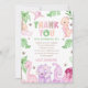 Watercolor Dinosaur Girl 1st Birthday Party Thank You Card