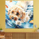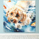 Capture the personality of your furry friend with this custom watercolor dog portrait, featuring a playful morkie poo swimming alongside delicate goldfish in soft washes of burnt brown, beige, blue, and orange. This whimsical pet portrait art blends movement, color, and charm—perfect for dog lovers looking for meaningful and creative gift ideas.