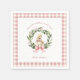 These charming baby shower napkins bring a touch of rustic elegance to your celebration. The delicate watercolor duckling, adorned with a sweet pink bow, sits nestled in a wreath of greenery, creating a heartwarming scene perfect for welcoming a new baby. The pink and white gingham border adds a touch of country charm, while the soft color palette complements any baby shower theme. These high-quality napkins will not only add beauty to your table setting, but also provide a delightful keepsake for your guests to remember the day. Make your shower unforgettable with these adorable napkins!