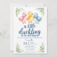 Celebrate your new arrival with this charming watercolor duckling baby shower invitation. Featuring three sweet ducklings in pastel pink, yellow, and blue, this gender-neutral design is perfect for honoring any mom-to-be.