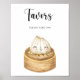 Celebrate with this watercolor cutie dumpling! Chinese dumpling in a wood plate. Baby shower party!