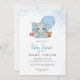 Watercolor Dusty Blue Elephant Baby Shower Invitation