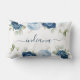 Watercolor Dusty Blue Floral Elegant Monogram Lumbar Pillow