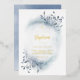 watercolor dusty blue foliage Baptism Foil Invitation
