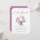 Watercolor Easter Egg and floral display, Easter Brunch invitation. Back of card features coordinating solid purple color.