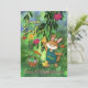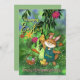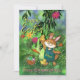Looking for a unique original card for the Easter holiday? This hand-painted illustration was beautifully crafted on a watercolor background in a green meadow. The leaves of a tree overshadow a cute bunny holding a chicken with a basket full of eggs, carrots, and flowers. The back has a short message you can adjust to your liking, along with the text at the front. You can check the collection for coordinating items. Happy Easter!