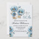 Watercolor Elegant Blue Gold Floral 80th Birthday Invitation