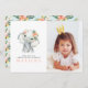 Watercolor elephant little girl photograph birthday party invitation. With delicate floral back ground and stunning elephant illustrations. Part of a collection.