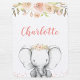 Sweet girl elephant baby blanket. Soft vintage pink watercolor flowers with a cute elephant illustration.
