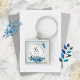 Watercolor Cerulean Floral Wedding Keychain