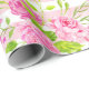 Watercolor English Roses Pink White Stripes Wrapping Paper