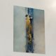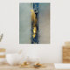 A poster with gold foil print on a watercolor ethereal abstract in blue - and sand tones.