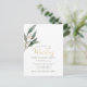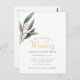 Watercolor green eucalypt leaf with gum nuts and gold script wedding invitation postcard. An elegant and simple wedding invitation. Customize the details with your wedding event details.