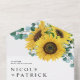 Invite guests to your wedding with this customizable sunflower wedding invitation. It features watercolor floral bouquet of sunflowers and eucalyptus leaves. Personalize this watercolor wedding invitation by adding your details. This sunflower all-in-one wedding invitation is perfect for summer and fall weddings.