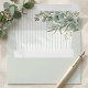 Complete your classic wedding stationery suite with a watercolor greenery envelope. Elegant eucalyptus and foliage cascades beautifully over soft sage green and white stripes. It provides the perfect refined touch for couples mailing out spring or summer wedding invitations. Perfect for botanical themes or romantic garden aesthetics.
