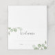 featuring title "welcome" in modern script font, decorated with soft watercolor eucalyptus on a white background.