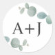 Watercolor Eucalyptus Greenery with Initials Classic Round Sticker