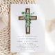 Watercolor Eucalyptus Modern Cross Christening Invitation