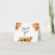 Fall thank you note featuring watercolor fall florals, sunflowers, fall leaves and berries in orange, red and yellow hues. The script Thank You displayed on front in a font color to match illustrations. The florals border are repeated on top inside and bottom inside intentionally left blank to provide space for a personal note. Available in two sizes.