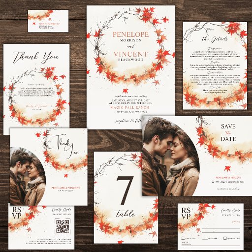 Celebrate your special day with our "Watercolor Fall Wreath" Thank You Card, ideal for classical weddings, fall wedding themes. The design features a beautiful watercolor wreath made of autumn maple leaves, perfectly complementing the invitation in the same collection. Other matching items are also available. The wording is completely editable, allowing you to change the size, color, font, and position on the page.