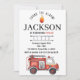 Watercolor firetruck birthday invitation for boy