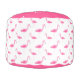 A cute pink flamingo pouf ottoman. Easily personalize with a name.