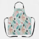 A seamless tropical pattern apron featuring elegant pink flamingos with speckled feathers and long, graceful necks. Set against broad brushstrokes in soft teal, mint, blush, and beige, the design mimics abstract palm fronds and foliage. Accented with dark stylized leaves flecked with gold and scattered black dots, this artistic watercolor-style pattern captures a dreamy, modern tropical vibe. Ideal for summer, beach themes, or tropical-inspired aesthetics.