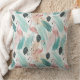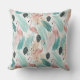 A seamless tropical pattern throw pillow featuring elegant pink flamingos with speckled feathers and long, graceful necks. Set against broad brushstrokes in soft teal, mint, blush, and beige, the design mimics abstract palm fronds and foliage. Accented with dark stylized leaves flecked with gold and scattered black dots, this artistic watercolor-style pattern captures a dreamy, modern tropical vibe. Ideal for summer, beach themes, or tropical-inspired aesthetics.