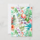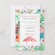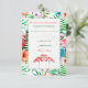 A brilliantly-colored, hand-painted, tropical, response card with a lush floral and fern background featuring pink flamingos which can be dragged to any location, made larger or smaller (+-) or eliminated.