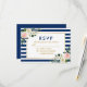 Watercolor Pink Blush White Floral Blue Stripes Wedding RSVP Card - Blue Back