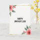 This card features a bright white background that keeps the look airy and calm, letting a few thoughtful details carry the message ❤️. Soft watercolor-style flowers sit in the upper-left and lower-right corners, forming a gentle diagonal that feels like two people leaning toward each other. The petals are tinted in blush and coral with light-to-deeper shading, like they’re catching a warm afternoon glow. Dusty green leaves curl around the blooms, adding a fresh contrast that still feels quiet and tender. A thin golden border runs around the edges with a brushed, slightly uneven texture, giving it a cozy, cared-for look. Centered inside the frame is the main message in charcoal-black lettering with a confident, friendly handwritten look, and the text sits comfortably in the open space without crowding the artwork 🌼. The floral clusters remain small and airy, with plenty of white space between them and the softly shimmering gold edge.