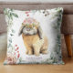 Watercolor Floral Bunny Rabbit Personalized Name Throw Pillow