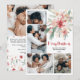 Watercolor Floral Christmas Five-Photo Collage Holiday Card