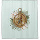 Introducing our Watercolor Floral Compass Shower Curtain. Featuring watercolor illustrations of a bronze compass embraced by a delicate wreath of lush leaves and vibrant flowers, all set against a soothing green background. Suitable for nature and wildlife enthusiasts.