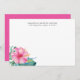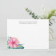 These wedding note cards feature personalized floral stationery with your name or monogram elegantly printed alongside a watercolor border of pink hibiscus flowers and monstera palm leaves. The back showcases a vibrant pink design, adding a bold yet tropical touch. Perfect as flat blank note cards for thank you notes, bridal showers, or everyday stationery. Available as single or bulk note cards wholesale. Shop more at www.zazzle.com/dotellabelle.