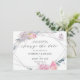 When your plans change for your wedding date, this card is a good choice for letting your wedding guests know the date has changed. It features a beautiful combination of delicate watercolors and sketched leaves and flowers. Trendy geometric shapes frame the design with their asymmetrical placement. The reverse side of the invitation has the bride and groom's initials with a decorative floral embellished ampersand. Colors include shades of pink, purple, lavender, peach, creamy yellow, teal and green. If you have already ordered your wedding invitations before the date changed, this card can be used as an enclosure with your invitations to inform your guests of the change in date. You can re-word the text to suit your specific circumstances.