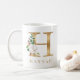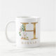 A personalized coffee mug with a faux gold letter "H" monogram, featuring decorative watercolor floral and foliage illustrations. Easily customize it with your name or create a unique gift for your loved ones.
